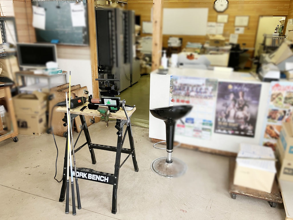 休日を利用してコザ印刷所の玄関スペースでリシャフトを行う。