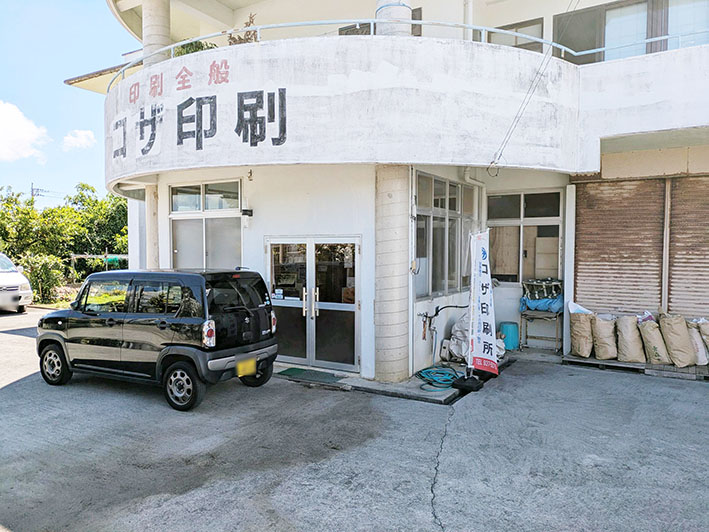「コザ印刷所うるま工場」の休業日に玄関スペースを間借りしております。