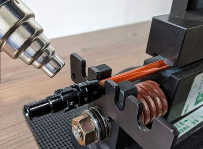 ヘッドやスリーブはかなり熱くなります。必ず手袋を着用してください。